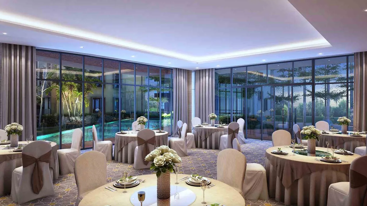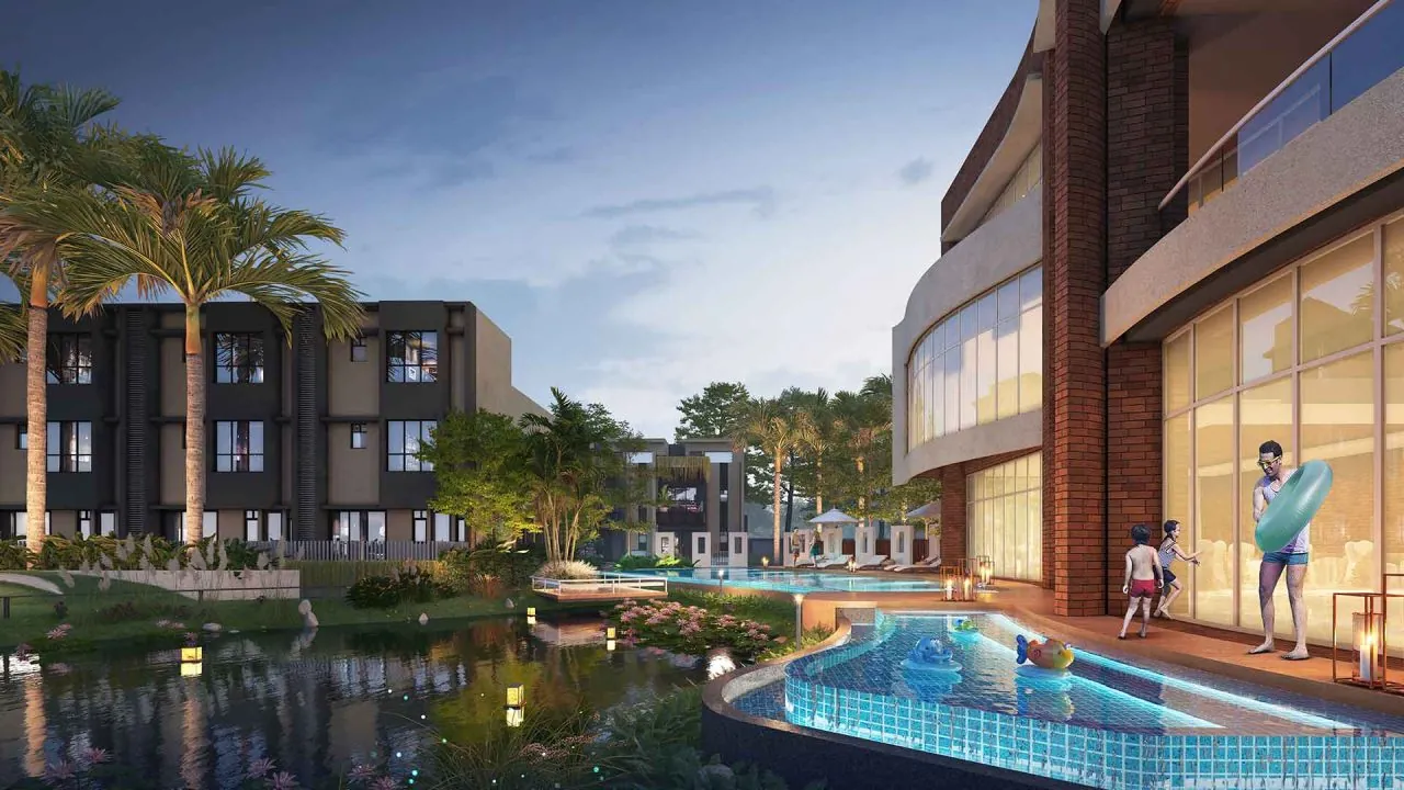 World-class amenities including swimming pool, gym, amphitheatre, and multipurpose court